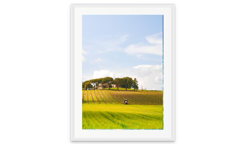 The printed image is separated from the frame by a premium bevel cut mat border to protect and enhance the image. Borderless images are also available on special request.