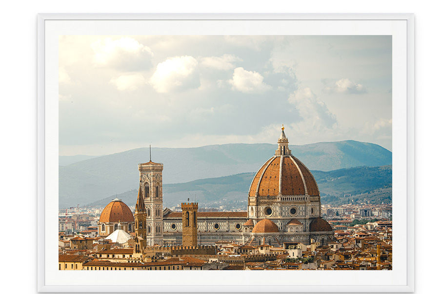 The printed image is separated from the frame by a premium bevel cut mat border to protect and enhance the image. Borderless images are also available on special request.